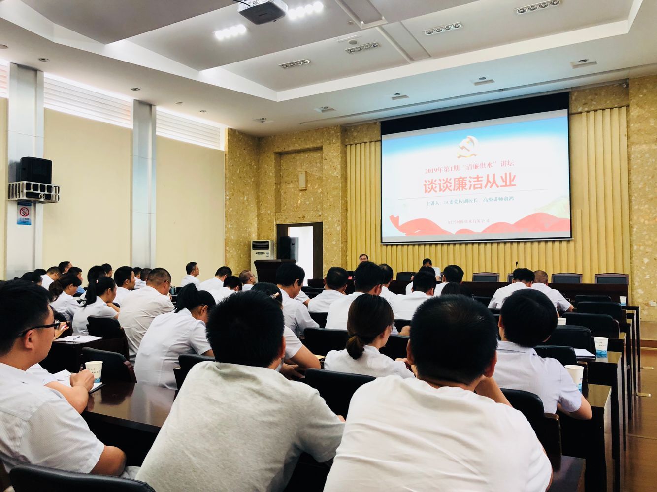 俞老師圍繞“廉潔從業”這一主題,給大家講明形式、劃清紅線,既有深入淺出的理論闡述,又有廣征博引的案例分析,更有實踐層面的對策思考,向我們深刻闡述了新時代下的新理念、新觀點、新論斷,指出在全面從嚴治黨新形勢下,全體黨員及干部要自覺做到“拒腐蝕、永不沾”,把遵紀守法、廉潔奉公作為自己的生命線,時刻保持對廉潔從業的敬畏尊崇,時刻用身邊的典型案例警示自己,時刻筑牢廉政建設的防線。以積極陽光的姿態爭當廉潔從業好員工,為供水事業發展做出更大的貢獻。