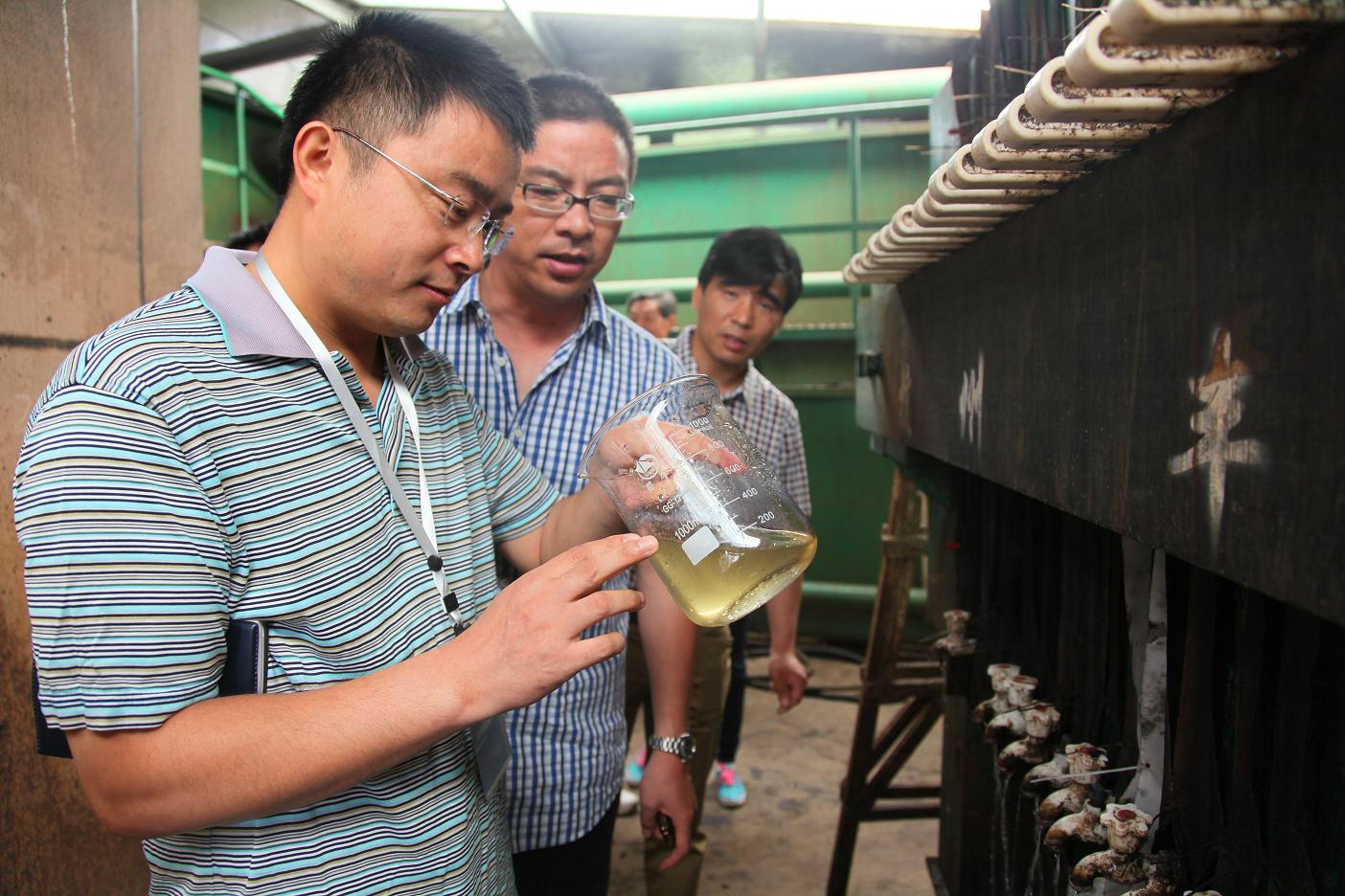 圖為集團(tuán)技術(shù)骨干為企業(yè)現(xiàn)場解答污水處理方面難題