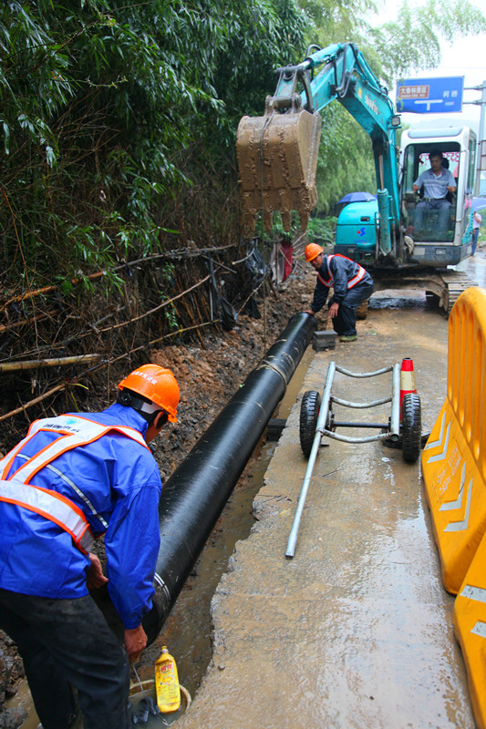 山區(qū)農(nóng)村小舜江飲用水工程湖塘總管施工現(xiàn)場