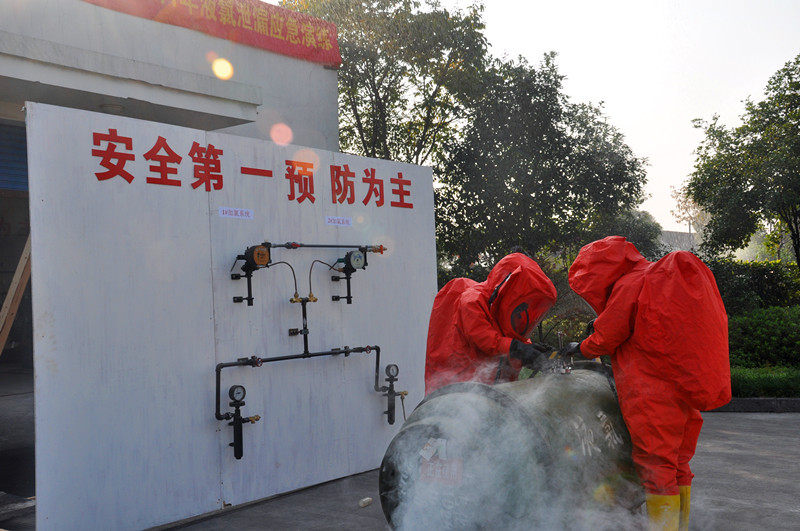 本次演練主要由液氯鋼瓶瓶體泄漏及增壓管道泄漏搶修和公司本部大樓人員疏散兩部分組成。演練過程中演練人員基本能掌握要領和注意事項,