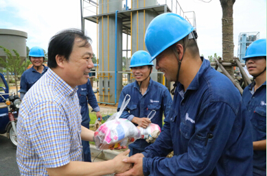 7月23日,集團黨委副書記高小林到公司中試現場及泥處理車間慰問一線職工,送上毛巾、消暑飲料等防暑用品。