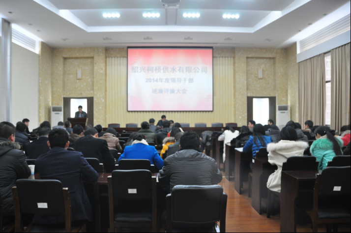 12月15日,公司在四樓會議室召開2014年度領導干部述廉評廉會議,會議由公司黨總支書記陳關海主持,公司中層副職以上干部及職工代表70余人參加會議。