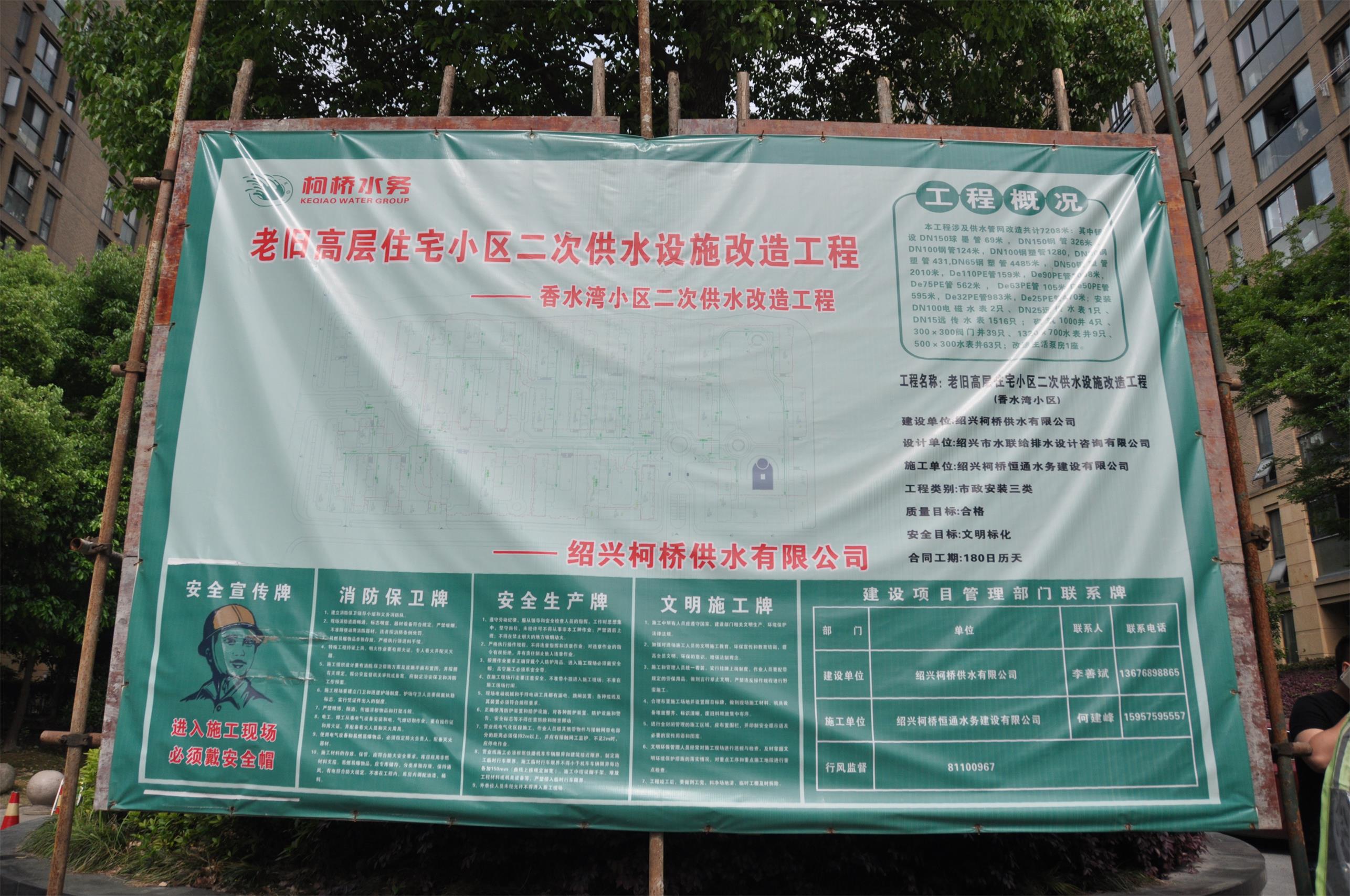 為確保2017年柯橋城區高層住宅小區二次供水設施改造工程順利推進,近日,公司充分利用LED電子屏、宣傳窗等載體,通過在改造中的8個小區大門入口懸掛巨型工程概況牌、在小區LED大屏幕滾動播報改造信息、在宣傳欄和單元樓門口張貼改造宣傳海報等措施,全方位、多角度、廣渠道宣傳工程概況和改造進度,公開工程狀況,提升群眾的參與度,通過公開溝通,取得群眾理解支持,從而進一步推動工程順利進行。