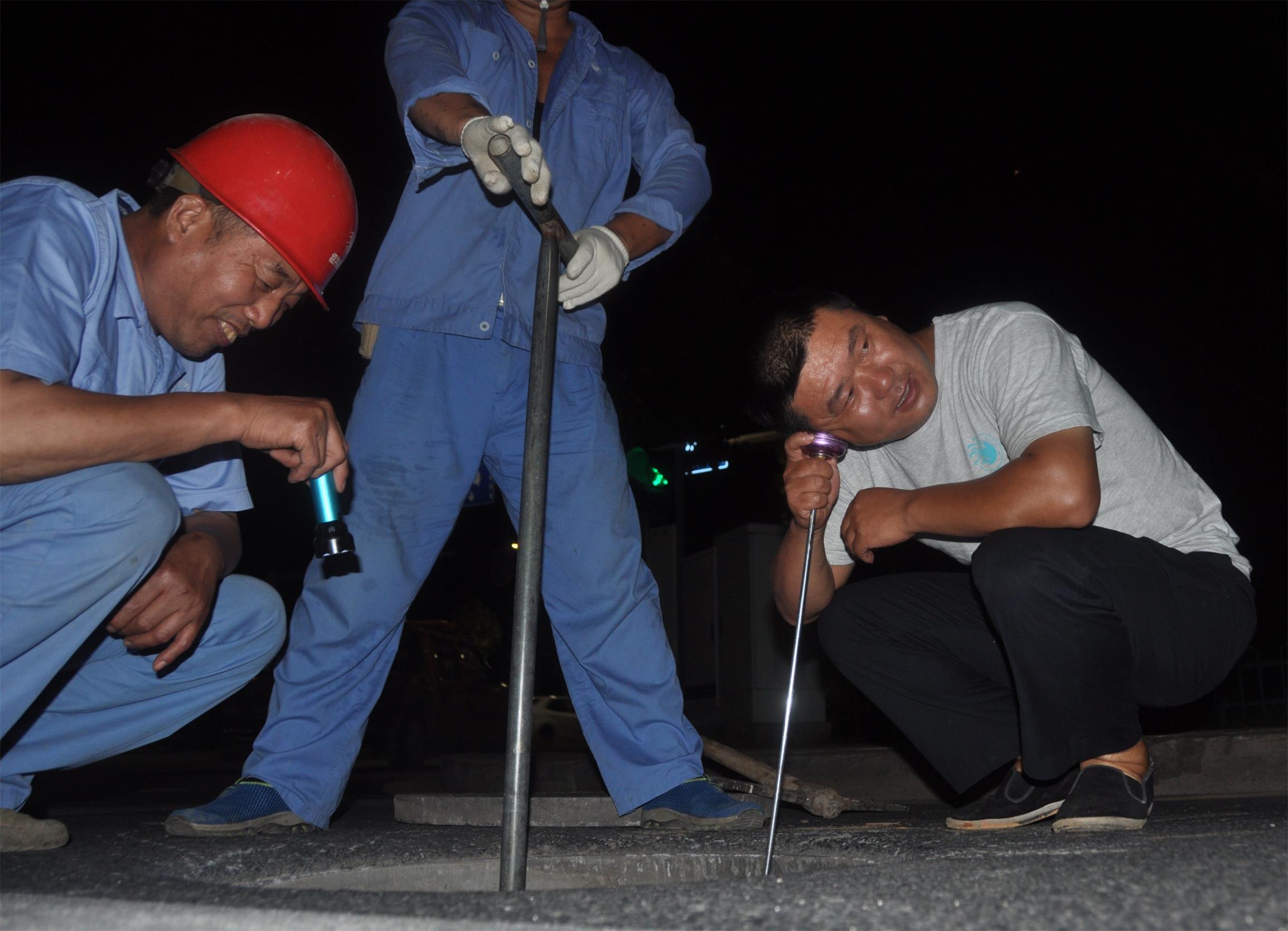為進(jìn)一步降低水量漏損,8月8日晚,城區(qū)分公司在前期集中“會診”的基礎(chǔ)上,協(xié)同管網(wǎng)分公司精干力量組成一支16人組成的“出診隊(duì)伍”,對柯巖南片香林大道、高爾夫路、柯巖大道和南閑路四條總管進(jìn)行了夜間集中聽漏。聽診人員穿梭在夜深人靜的馬路上,用耳、用心感受“地下網(wǎng)”的疑難雜癥,發(fā)現(xiàn)可疑漏點(diǎn)隨即記錄筆記,并在隱患處做上標(biāo)記,沒有言語交流,卻彼此配合默契。次日把“診斷報告”帶回,進(jìn)行集中“會診”后再“對癥下藥”。