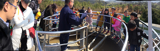 當天下午,王壇水廠迎來了來自魯迅小學的30多名學生、家長和教師,在水廠工作人員的帶領下,30多名參觀者參觀了反應池、過濾池、清水池、化驗室等制水場地,見證了自來水從混濁到清澈的“出生過程” 直觀的了解了從“原水”到“出廠水”的濁度變化有多大,水里面的雜質是怎樣分離出來的,最后輸到家里的“自來水”是否達到標準……,并現場觀看了化驗員對原水和出廠水進行水質檢測。參加“探秘”的小學生們還親身體驗了色度比對、PH值測試等小實驗,通過現場參觀,讓大家了解了自來水生產的全過程,增強了節水、護水意識。